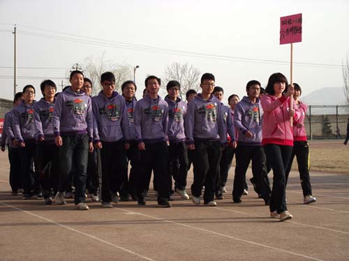 迎着东升的旭日,同学们踏着乍暖还寒的凉意走向体育场。开幕式如期进行,每个班组成整齐的方阵带着昂扬的激情顺次走过主席台,空中回荡着振奋人心的口号,凝聚着团结的力量。随后升国旗、奏国歌,领导致开幕词,运动员代表、裁判员代表宣誓。