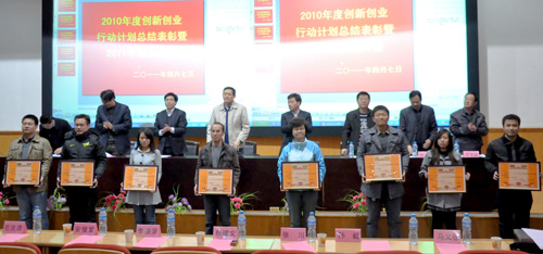 4月7日晚,学校在天山堂C区302报告厅召开2010年度创新创业行动计划总结表彰暨2011年动员大会。党委副书记李恒滨出席大会。宣传部、教务处、科技处、学生处、团委、大学科技园办公室相关负责人,全体专职团干部,创新创业行动计划先进集体、获奖学生代表参加了大会。大会由校团委副书记马树超主持。