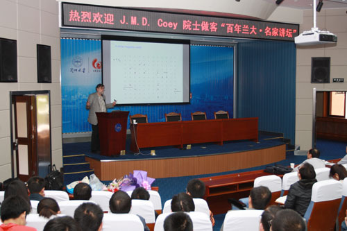 报告会前,校党委副书记、副校长甘晖会见了J.M.D.Coey教授一行。李发伸教授,外事处及学院负责人参加了会见。