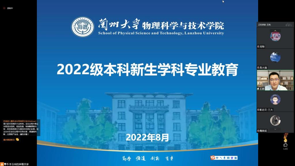 8月13日下午,学院线上开展2022级本科新生学科专业教育之“一起‘谈大学’”活动,旨在帮助新生了解学院专业设置、增强专业兴趣、培养专业思想、树立专业自信。院长刘翔、副院长王建波以及全体2022级本科生班主任、学生工作和教学管理人员、2022级本科生和部分家长参加了活动,党委副书记王岩主持活动。
