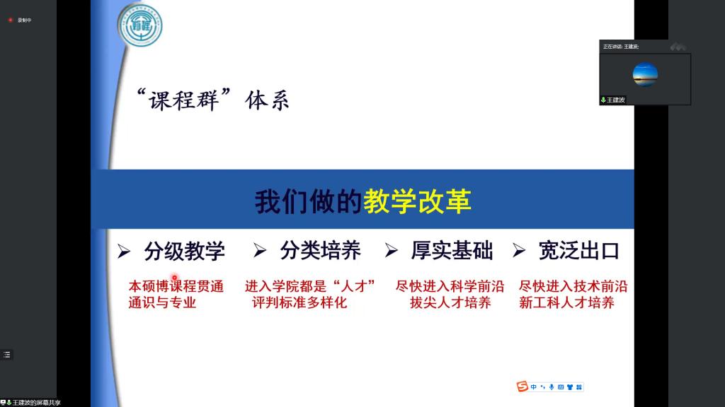 王建波对学院所设本科专业的学科定位和社会需求进行了说明,对学院教学改革和教学管理政策进行了解读,着重介绍了“分级教学、分类培养、厚实基础、宽泛出口”的人才培养模式,鼓励同学们做好规划、充分准备,合理安排好大学阶段的学习生活。